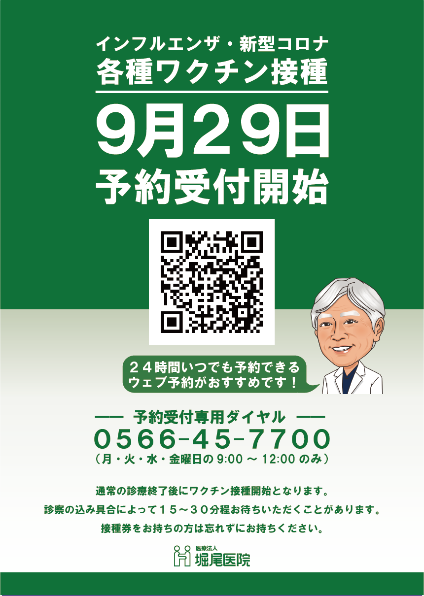 ※接種日の30日前より予約可能です。当院ワクチン接種は12月末までを予定しています。